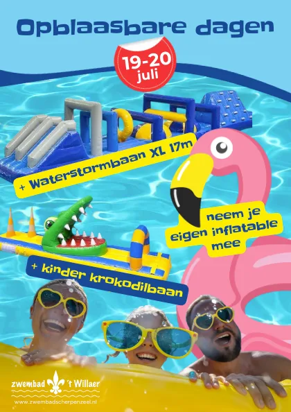 Welkom in Zwembad ’t Willaer in Scherpenzeel. Het verwarmde openluchtzwembad is prachtig en beschut gelegen. Trek een baantje in het 50 meter wedstrijdbad, of neem daar een duik van onze lage of hoge duikplank. Kom recreatief zwemmen in ons recreatiebad, en glij van onze 42 meter lange glijbaan. De kleine kinderen kunnen spelen in het peuterbad en de daaraan grenzende speeltuin. Er is daarnaast genoeg ligweide om te kunnen genieten van de zon, of juist de schaduw. Zin om wat te eten of te drinken? De kiosk heeft een uitgebreid aanbod en beschikt over een heerlijk terras.